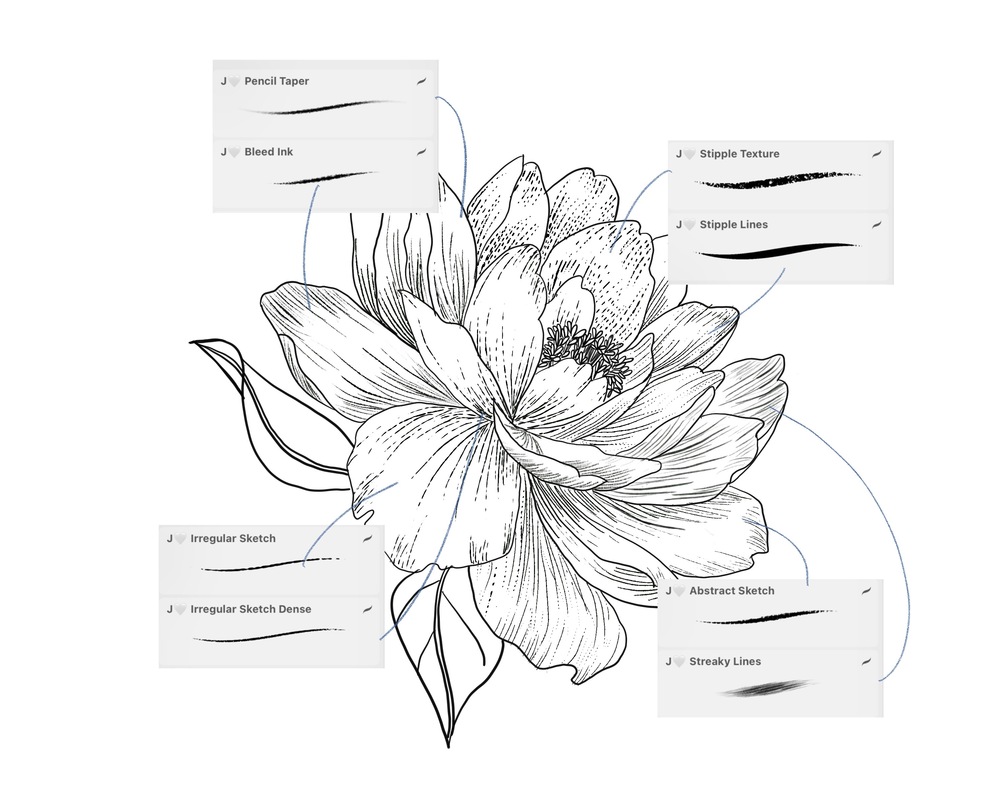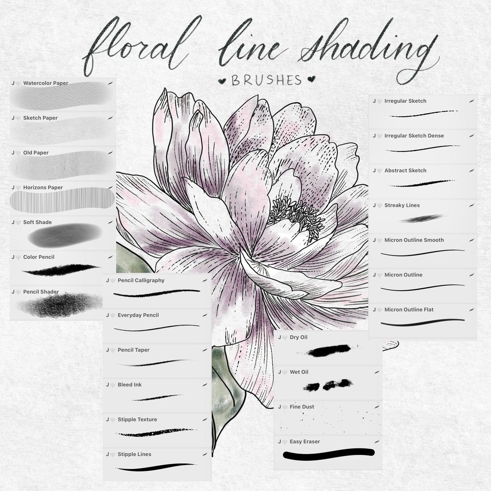 All the brushes you need to line shade your floral compositions in the Procreate app!